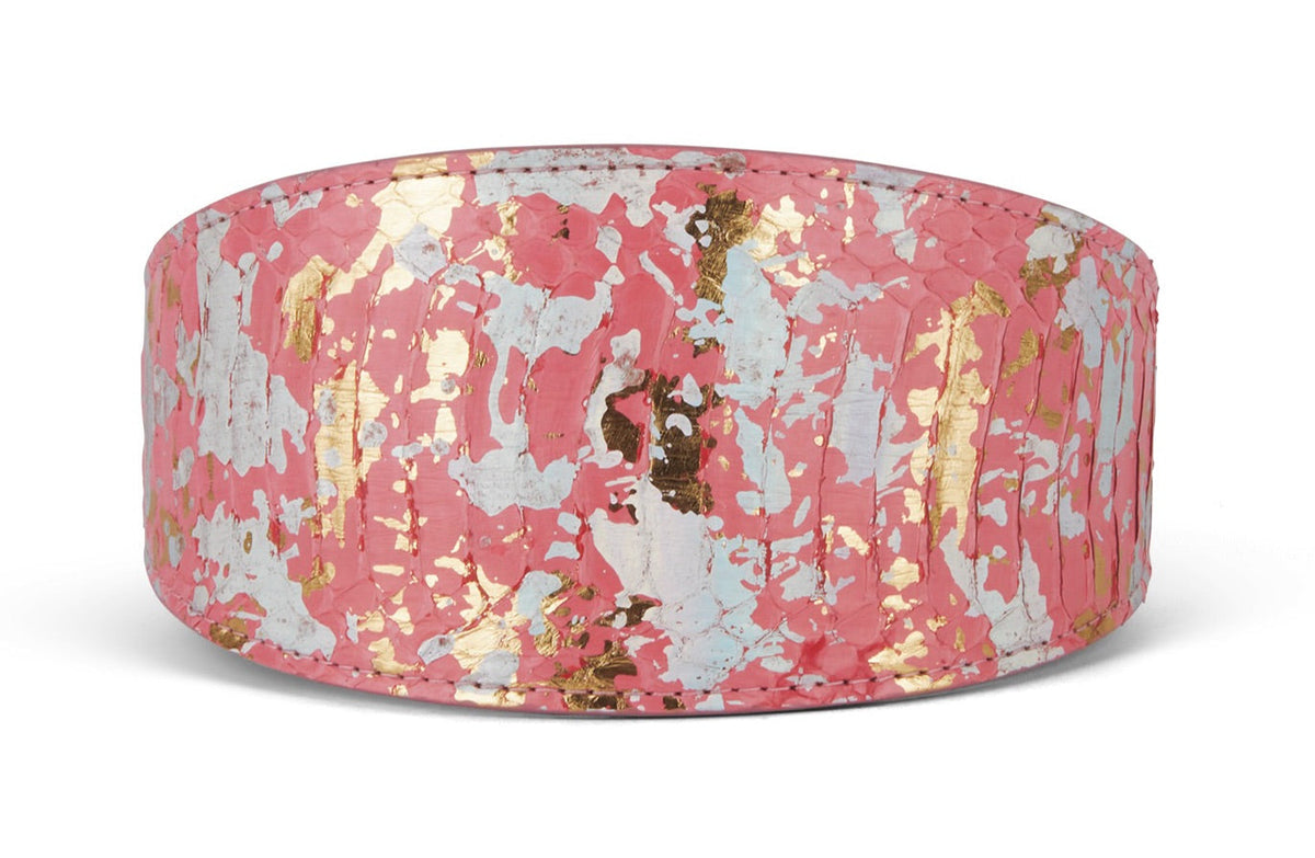 Iridescent Art Deco Pink/Gold/Silver Custom Snake 3 Wide Style Collar. Fit 14-19 Neck-size.