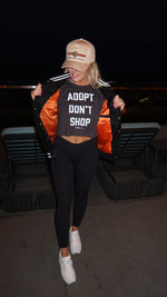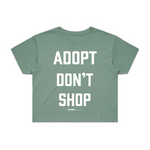 Adopt Don't Shop This Crop Tee is perfect for walking your puppy! You can't buy Happiness, but you can Rescue a Puppy and thats basically the same thing! Our New Crop Tee is - Relaxed...