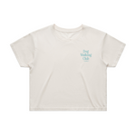 The front of the Crop Tee has the graphic printed smaller on the chest, and then bigger on the back!
