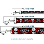 Buckle-Down Dog Leash - Brass Knuckles/Skulls/Roses Black/Red/White