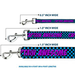 Dog Leash - CAPTAIN AWESOME Turquoise Checker/Fuchsia