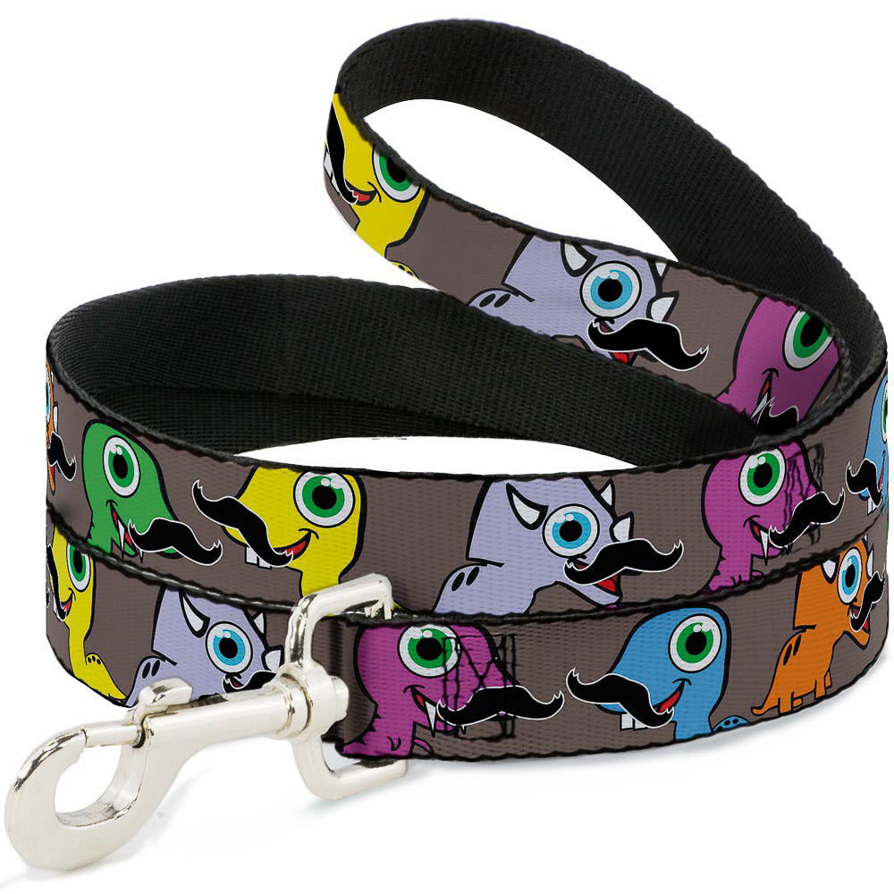 Dog Leash - Cute Dinosaurs w/Mustaches Gray