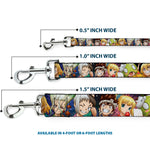 This fashion-forward dog leash is a great way to show off your favorite characters or brands. The durable components and beautiful printing ensure that the colors will continue to pop for years to come! It is made of high-density polyester and steel hardware. The leash is available in 0.5", 1.0" and 1.5" widths, and 4-foot and 6-foot lengths. This product is Made in the USA by Buckle-Down Inc. and officially licensed by Crunchyroll.