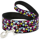 Dog Leash - Funky Skulls Hearts & Stars Black/Multi Color