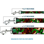 This fashion-forward dog leash is a great way to show off your favorite characters or brands. The durable components and beautiful printing ensure that the colors will continue to pop for years to come! It is made of high-density polyester and steel hardware. The leash is available in 0.5, 1.0 and 1.5 inches wide, and 4 and 6 feet in length. This product is Made in the USA by Buckle-Down Inc. and officially licensed by Marvel Comics.