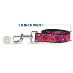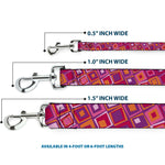 Dog Leash - Skewed Squares Stacked Purple/Orange/Pinks