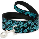 Dog Leash - Skulls Stacked Weathered Black/Teal