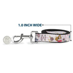 Dog Leash - Sleeping Beauty Aurora Castle and Fairy Godmothers Pose with Script and Flowers White/Pinks