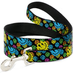 Dog Leash - Smiley Faces Melted Stacked Black/Multi Neon