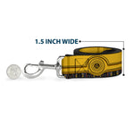 This fashion-forward dog leash is a great way to show off your favorite characters or brands. The durable components and beautiful printing ensure that the colors will continue to pop for years to come! It is made of high-density polyester and steel hardware. The leash is available in 0.5, 1.0 and 1.5 inches wide, and 4 and 6 feet in length. This product is Made in the USA by Buckle-Down Inc. and officially licensed by Star Wars.