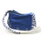 Navy blue stripe design, featuring zipper top closure, mesh windows with folding cover, softly padded walls, double shoulder strap, and five pockets for all your stuff.Measures 16L x 8W x 12.5H inches.