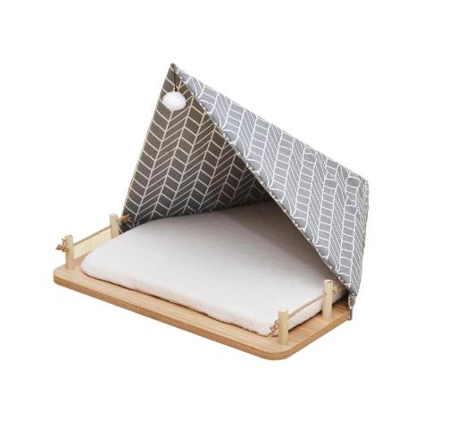 The PetPals Camping Ground will bring an outside experience into your home. This modern camp design features light brown laminated wood and a grey and white pattern fabric that provides a camping tent look. Camping Ground includes a pom-pom toy to provide your cat with hours of playtime as well as daily exercise. This stylish pet bed design features a soft plush cushion to provide your pet with a cozy place to take a nap or rest. This lovely pet bed design will be the perfect addition to your home décor. All instructions and tools are included for an easy assembly process.