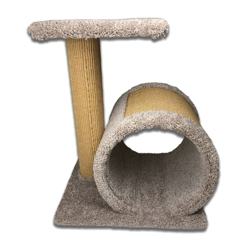 The T1D1 Scratching Tunnel with Deck features 100% all natural sisal carpet; the ideal and recommended scratching surface for cats. Multi-functional: Scratch, Play, Hide and Rest! Carpet color may vary. Usually comes in neutral color tones
