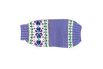 Our Lavender Flowers dog sweater with a beautiful lavender and purple colors to really make your dog stand out. This dog sweater is crafted from 100% sheep wool and hand knit, made in every size. Beautiful mixes of different shades of lavender and purple look terrific on every dog. This pattern looks great on both male and female dogs. Chilly dog pet products are hand knit by artisan knitters in the northern highlands of South America made following Fair Trade Guideline. Wool is a renewable resource and is water repellent. Easy to put on and take off with a pullover design that slips over your pet’s head. That means less fuss when it’s time to dress up and hit the town. This sweater will keep your puppy toasty warm all winter long. Trendy colors in multiple patterns suitable not only for everyday wear but also for holidays such as Christmas, Thanksgiving, etс. In our sweater your pet will look fashionable and receive many compliments Chilly Dog sweaters are the warmest because the the natural fibers have greater bulk which prevents air pockets. Keeps your pet warm and cozy during the colder winter climates and during those chilly summer nights. Our hand-knit wool sweaters in natural gray tones fit barrel chested dogs for example, Pitt Bulls, Boxers and Pugs beautifully because of the elasticity in the tightly knit stitches. The quality of Chilly Dog sweaters is superior to any other dog sweater. You will see the moment you hold it in your hand. Treat your dog to the best… So, add some cool-weather cuteness to your pet’s wardrobe with this sweater. The DoDo Dog Sweater Review Our sweaters are made to fit a variety of dog breeds like Chihuahuas, Pomeranians, Dachshunds, Beagles, Bulldogs, Dalmatians, Boxers, Rottweilers, German Shepherds, & Dobermans . We use only natural fibers and looms to create these very special dog sweaters, no pollution is added to the environment. Machine wash cold and lay flat to dry. For best sizing, check out Chilly Dog’s Sizing Chart