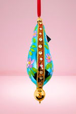The Florentine Elegance is a study in contrast—brilliant topaz blue meets delicate hand-painted florals, while a gilded ribbon of deep red scrollwork, encrusted with crystals, cascades down its center. Every flourish is intentional, every gemstone placed with precision, creating a piece that is as timeless as it is striking.