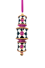 She winks from behind a diamond-tiled disguise, dressed in high-stakes black and white with a pop of hot pink that says she’s not here to play it safe.