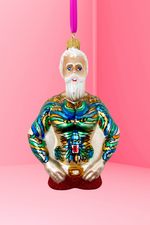 A canvas of ink and electricity, Tattoo Santa transforms tradition with every stroke. His sculpted form is adorned with ferocious dragons and bold flourishes, a striking contrast to his twinkling blue eyes and snow-white beard. A holiday legend reimagined—not softened, but sharpened.