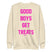 Reward yourself with the sweatshirt that started it all — the Good Boys Get Treats Unisex Crewneck by Puppies Make Me Happy. Featuring our iconic phrase in bold pink lettering, this fan-favorite sweatshirt is equal parts playful and cozy — made for those who know that good boys (and girls) definitely deserve treats.