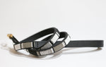 Introducing The Shades of Grey Beaded Dog Lead: featuring a sophisticated design with black, silver, and white beads arranged in an elegant Circle of Life pattern. Set against sleek black leather, this lead combines muted tones and geometric shapes to create a refined and stylish accessory for your dog.