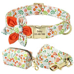 Strut in style, with this Orange Floral Dog Collar & Leash matching set that includes a Personalized Dog Collar, Leash & Poop Bag Case. This luxurious floral collar set is perfect for small, medium and large breed dogs.