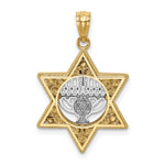 Celebrate and honor all special occasions with jewelry of religious significance! Our collection of spiritually inspired designs that show faith, hope and devotion are perfect for commemorating life's milestones. This two tone pendant crafted in 14k yellow and white gold features a 3-dimensional open-back design. The approximate size is 17mm (5/8 inch) in width by 27mm (1 1/16 inch) in length with the bail. This item does not include a chain.
