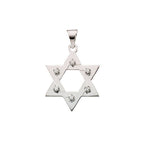 This diamond Star of David pendant is crafted with polished 14 karat white gold and it features 6 round full cut diamonds. The approximate size is 26 mm (1inch) in width x 32 mm (1...