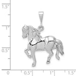 As a symbolic symbol, meaningful object, or just because you love horses this 14k white gold pendant is a winner. It features a two-dimensional open back design with a high polished finish that is approximately 25mm (1 Inch) in width by 33mm (1 1/4 Inch) in length, which includes the tapered bail. Made in the U.S.A. Chain not included.
