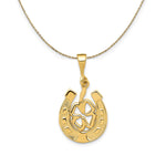 Tie the meaning to the moment with a classic or unusual pendant that makes it personal, thoughtful, or meaningful. This four leaf clover and horseshoe pendant is crafted in 14k yellow gold and features a...