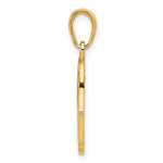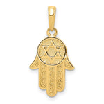 Proudly display your faith and ward off evil while drawing positive energies into your life with this symbolic pendant. Fashioned from 14k yellow gold with a polished and satin finish, this small spiritual charm is approximately 12mm (7/16 inch) in width by 25mm (1 inch) in length, which includes the bail. It has a textured back that is not suitable for engraving. Chain not included.
