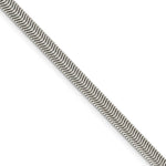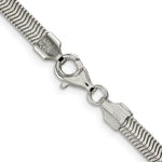 Crafted with sterling silver Approximate 4.2 mm in width Solid link, flat oval Snake style chain Closes with a fancy lobster clasp