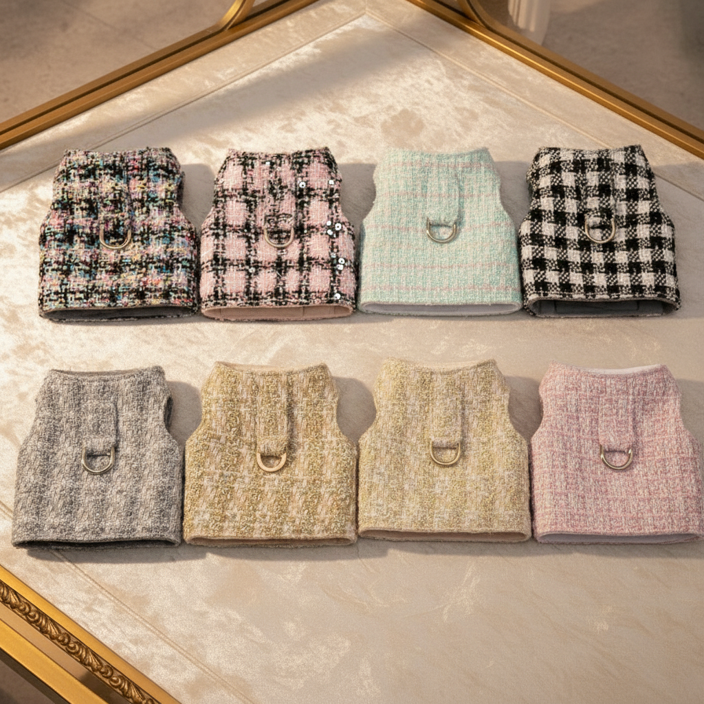 Give your pup a wardrobe upgrade with the Annabella Dog Harness Collection by Hello Doggie, a luxurious blend of style, comfort, and thoughtful craftsmanship. Each harness is meticulously handcrafted, from fabric selection to the final stitch, so your furry baby feels just as special as they look.