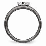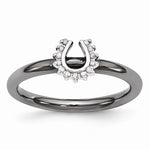 Create a look that is all your own with a fun assortment of rings that looks great alone or stacked in a collection to express your own unique style. This classic style horseshoe ring fashioned from black ruthenium rhodium plated sterling silver features a 7mm white diamond horseshoe atop a 2.5mm width band. Prong set with round, natural, I2-I3 clarity diamonds totaling .7 carat. Guaranteed to fit together perfectly with all of the mix and match Stackable Expressions rings.