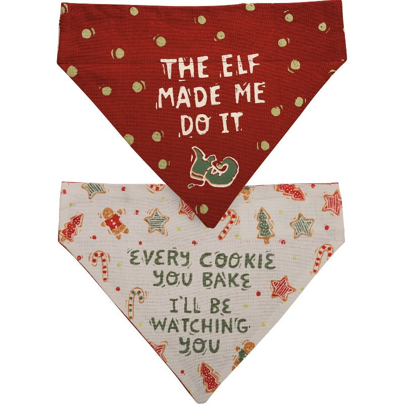 This Primitives by Kathy reversible cotton linen blend collar bandana features "Every Cookie You Bake I'll Be Watching You" sentiment and Christmas cookie designs on one side, and "The Elf Made Me Do It" sentiment with...
