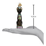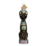 In ancient Egypt, domestic cats were sacred animals to the cat goddesses, as they were revered for their powers of protection. This hand-painted glass ornament is adorned with jeweled tones to embody the beauty and highness of a cat goddess.