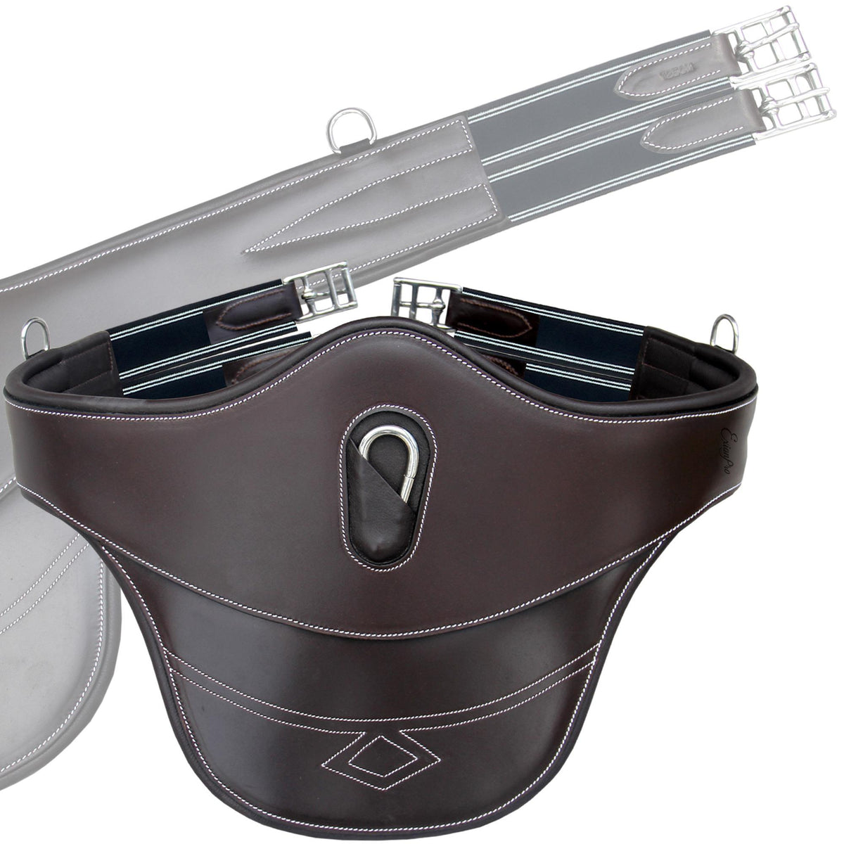 The girth's reinforced belly guard avoids any long-term deformation occurring and allows better shock absorption. The elastic sections on both sides make breathing easier for the horse.