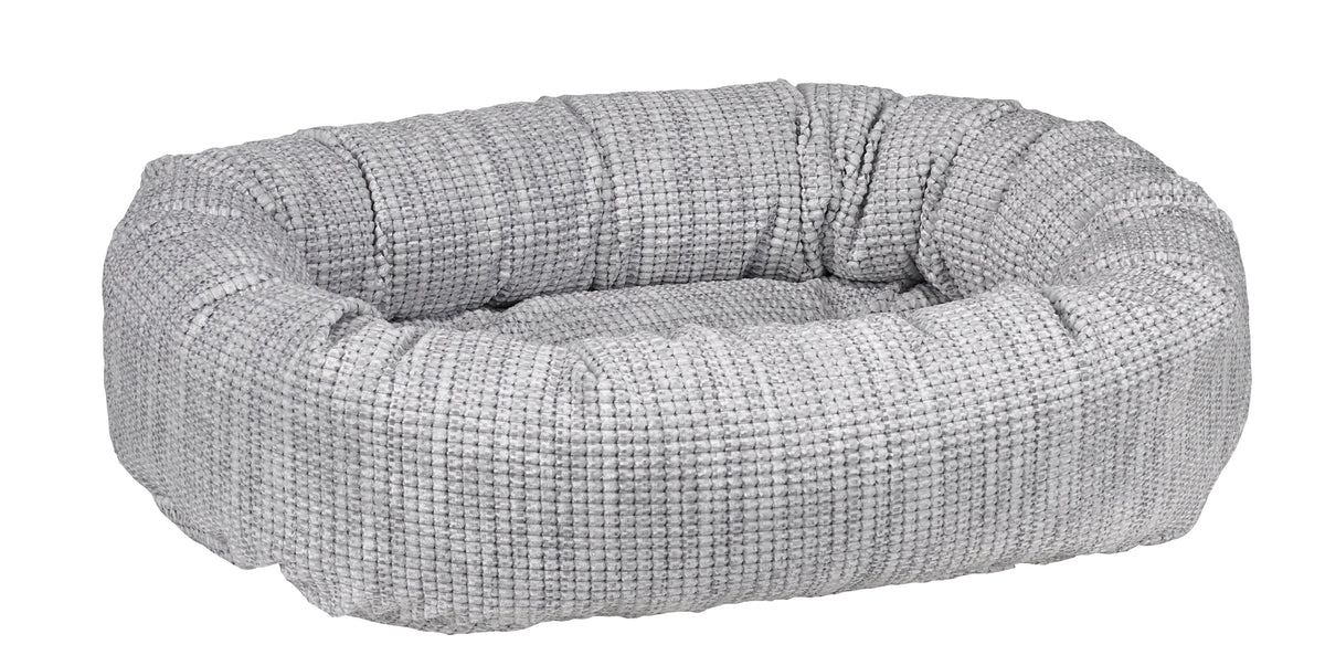 The oval ring creates the feeling of security pets love, while the removable tufted cushion can be used as a crate or travel mat. The circular tufting creates an elegant upholstered look while ensuring fibre does not clump or shift when washing.