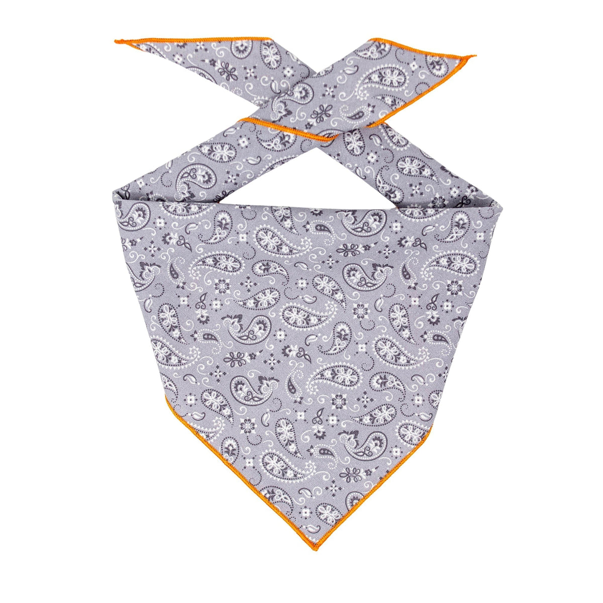 The Classic Gray Paisley Bandana with Orange Rolled Hem