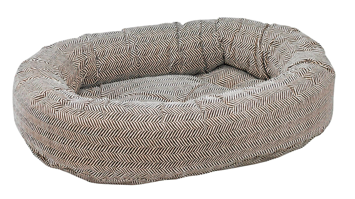 The oval ring creates the feeling of security pets love, while the removable tufted cushion can be used as a crate or travel mat. The circular tufting creates an elegant upholstered look while ensuring fibre does not clump or shift when washing.