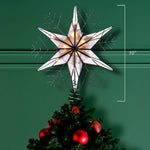 This Kurt Adler 10 Light 10-inch Capiz and Wire Snowflakes with glitter treetop is a fun and festive addition to your Christmas tree décor. The inside of the treetop shines brightly and extends out into glittery snowflake branches creating a star and snowflake treetop combination. This treetop includes 4 spare bulbs and 2 spare fuses.