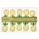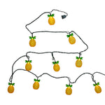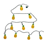This Kurt Adler 10-Light Glass-Look Pineapple Light Set is a fun, festive way to add to your holiday or theme party décor. Each of the 10 lights in this set resembles a pineapple, and the glossy finish of each pineapple gives it a delicate glass look. This indoor/outdoor set features green wire, a 30" lead wire, 12" spacing, and 12V 0.08A incandescent amber bulbs.