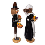 Kurt Adler's 15-Inch Pilgrim Nutcrackers are a delightful 2-piece set that brings the charm of the Pilgrim era to your Thanksgiving and fall decorations. Crafted with meticulous attention to detail, the Pilgrim Nutcrackers feature traditional clothing, including wide-brimmed hats, buckle-adorned shoes, and colonial-inspired garments. The facial expressions and postures of both the man and woman nutcrackers convey a sense of warmth and welcome, adding a touch of historical charm to your Thanksgiving decor. These nutcrackers serve as wonderful reminders of the Thanksgiving season, making them cherished additions to your holiday traditions.