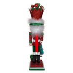 Kurt Adler's 18-Inch Hollywood Nutcrackers Red and Green with Presents Crown Nutcracker from Kurt Adler is a vibrant and festive holiday decoration that combines traditional nutcracker aesthetics with a playful and whimsical design. Crafted with meticulous attention to detail, this nutcracker captures the spirit of gift-giving and holiday joy. This nutcracker features a regal figurine adorned in a striking red and green uniform. The nutcracker's attire is reminiscent of classic holiday colors, evoking feelings of warmth and festivity. The combination of red and green elements creates a harmonious and traditional holiday palette. The nutcracker wears a crown embellished with presents and gifts, symbolizing the spirit of generosity and the joy of giving during the holiday season. This playful addition adds a touch of whimsy to the nutcracker's design and creates a focal point that draws the eye. This nutcracker is adorned with intricate details and embellishments, such as glitter, metallic paint, and rhinestones. These elements add a touch of sparkle and glamour to the nutcracker's attire, enhancing its festive appeal. Whether displayed on a mantle, as part of a centerpiece, or as a statement piece on its own, this nutcracker brings a sense of holiday magic and tradition to your space. Its vibrant colors, cheerful design, and intricate details infuse your holiday decor with a sense of joy and celebration, making it a cherished and eye-catching addition to your festive home ambiance.