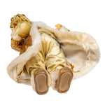 Elevate your holiday decor with Kurt Adler's elegant 18" KSA Kringle Standing Gold Santa with Tree. This luxurious Santa figure features a stunning gold-accented suit, exuding a sophisticated holiday charm. Holding a beautifully decorated Christmas tree, Santa stands tall with a joyful expression, ready to bring festive cheer to your home. The exquisite details of this Kringle Santa, from his ornate attire to the shimmering tree, make it a perfect centerpiece for any mantel, tabletop, or holiday display. A perfect blend of tradition and glamour, this Santa adds a touch of festive elegance to your Christmas decor.