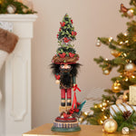The 19.5-Inch Hollywood Cardinal in Tree Hat Nutcracker is part of the exclusive Hollywood nutcracker collection for Kurt S. Adler. The nutcracker is holding a red cardinal in one hand and in the other he holds greenery and red bells. His Christmas tree hat is nestled in a birds nest and is decorated with greenery, red cardinals and red berries. This nutcracker is for decorative use only.