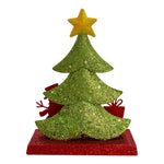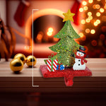 Hang your stocking in style this Christmas with this 6.5-Inch Christmas Tree Stocking Holder from Kurt Adler! Its fun and unique design features a bright green glittery Christmas tree topped with a yellow star. At the base of the tree are some presents and a snowman. The base of this piece is a bright glittery red for an extra festive touch.