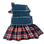 Get Fall ready with the Lauren Dress, blending timeless schoolgirl charm with thoughtful features. It includes a built-in denim harness with secure loop and closure to keep your pet comfortable and safe. The large bow at the neckline adds a festive touch, making it perfect for both holiday celebrations and everyday wear. Crafted for comfort and freedom of movement, this durable dress is designed to last, making it an ideal seasonal staple for your little one.