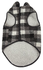 The Pet Life ® 'Black Boxer' Classical Fashion Insulated Plaid Dog Coat features a Classical Tattersall Black, White and Grey Plaid Pattern composed with an Exterior and Reversible Buttery-Soft Sherpa that extends into the collar for added warmth and comfort. Features Sponged lining for superior craftsmanship and durability. Features Tough-Grade Hook-and-Loop Belly Enclosures for convenient on and off access and a leash slit below the neck line. Available in Multiple Sizes.