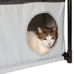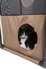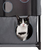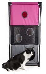 The Pet Life Kitty-Square obstacle soft folding cat tree is composed of durable Ballistic Nylon and Mesh with inner-seat belt webbed stitching for added durability. The Kitty-square features numerous hole entrances at the bottom, mezzanine and top levels. Perfect for Cat Interactive play, this life-sized cat puzzle house is easily collapsible and perfect for traveling and easy setup. Less bulkier than the bulkier conventional cat houses, this cat house is both lightweight and great for storage. This interactive cat tree is great for multiple cats and great for brain activity development. Assembles in minutes, these poles easily connect into place and sturdy enough to carry up to 200 Lbs. of weight. Perfect for both indoor and outdoor usages. Features 3 levels of playful fun, great for napping or lounging. This travel cat tree is available in multiple colors.