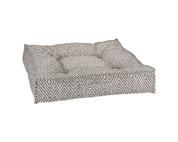 The name Piazza is an Italian term (pi-az-za) that describes an open public square which is the center of public life in many of Italys towns. Your dog will be sure to be drawn to the luxurious fibre topped foam center cushion and will be pampered with the plush overstuffed outer bolsters. Sleek, space saving modern design with the added security and comfort of removable bolsters.