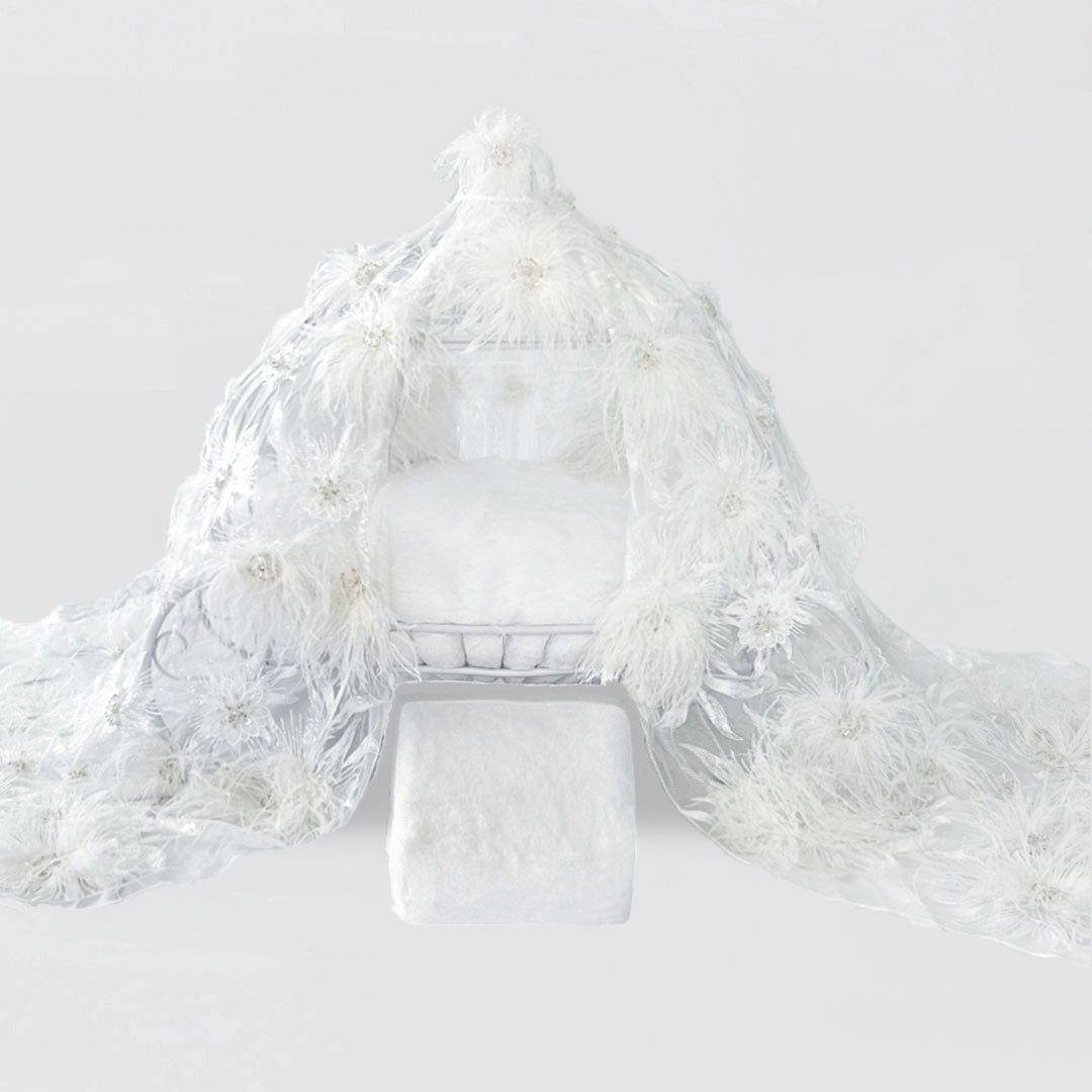 Introducing the epitome of glamour and indulgence, Prima Donna Luxury Dog Carriage by Hello Doggie. This exclusive carriage bed is not just a piece of furniture, but a statement of lavishness and extravagance for your beloved furry companion. Like a precious gem in a collection of fine art, each carriage in this one-of-a-kind collection is meticulously designed and handmade to perfection, ensuring that your baby has a bed that is truly unique and breathtaking. The bed is adorned with luxurious details, from the gentle fabric that cocoons your pet in comfort to the meticulously placed small embellishments that exude elegance and charm. Let your furry royal rest in style and comfort with the Prima Donna Luxury Dog Carriage, where every nap becomes a dreamy escape into a world of opulence. Pillow (bed) may be washed on delicate, cool with no bleach or softener and air dry or tumble on low. Cover and throw pillows can be spot cleaned.